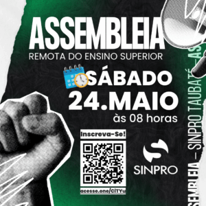 O Sindicato dos Professores de Taubaté e Região (SINPRO) convoca todos os docentes do Ensino Superior da rede privada para participarem da Assembleia Remota que será realizada neste sábado, 24 de maio, às 8h, como parte da campanha salarial em curso em todo o Estado de São Paulo.